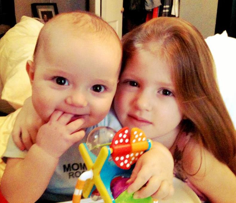 It is the first day of spring and the rain is falling here in Tacoma. We just got home from Jameson's 6 month check up (although he is almost 7 months...we had the stomach flu on his original appt. day). He is a whopping 19.2 lbs and 28 inches. He is 80th percentile for both, and continues to wow his doctor with his chunky legs haha. I explained to the doctor that it is taking him longer to want to learn to sit up solo and he told me that his body mass makes it a little harder to learn to do those things. Other than that, he has a clean bill of health and the doctor was very proud that I was still breastfeeding and that I am making all of Jameson's baby food myself. Bella was a great helper at the doctor. She held baby bro's hand while he got poked and told him that "everything was going to be fine." She is the best helper and really makes my job a lot easier...most days.